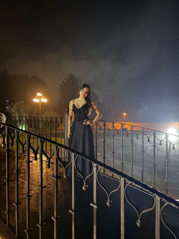 Título: En una fiesta de noche, vestimenta formal